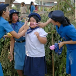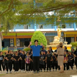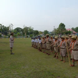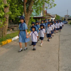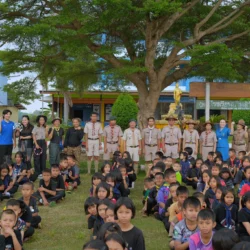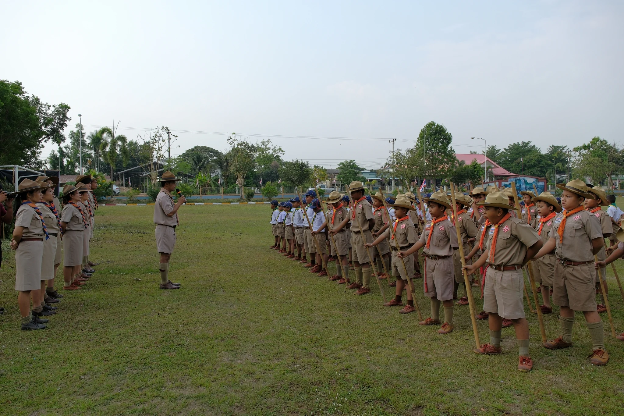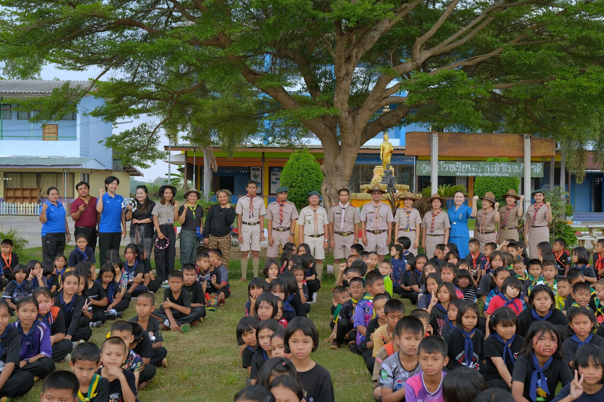 นักเรียนลูกเสือและยุวกาชาดจากโรงเรียนบ้านสำโรงเกียรติ